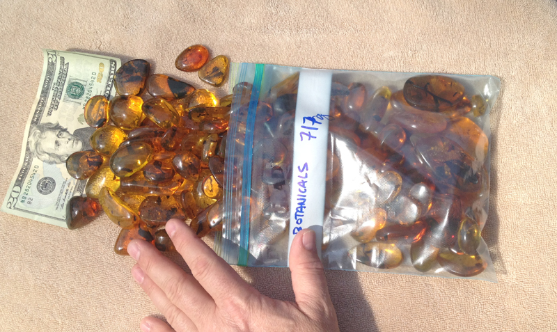 a group of 130 large sized authentic Dominican Amber gemstones each with at least 1 botanical inclusion