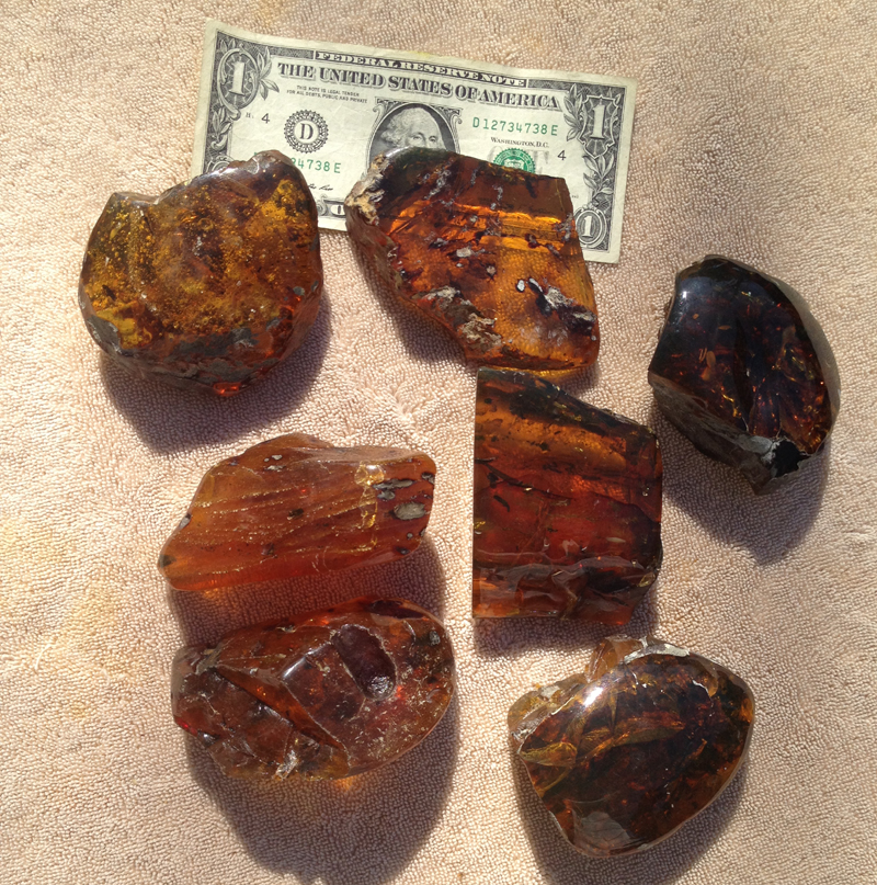 A group of 7 large sized authentic Dominican Amber stones, these stones are either barren or have tiny fossils