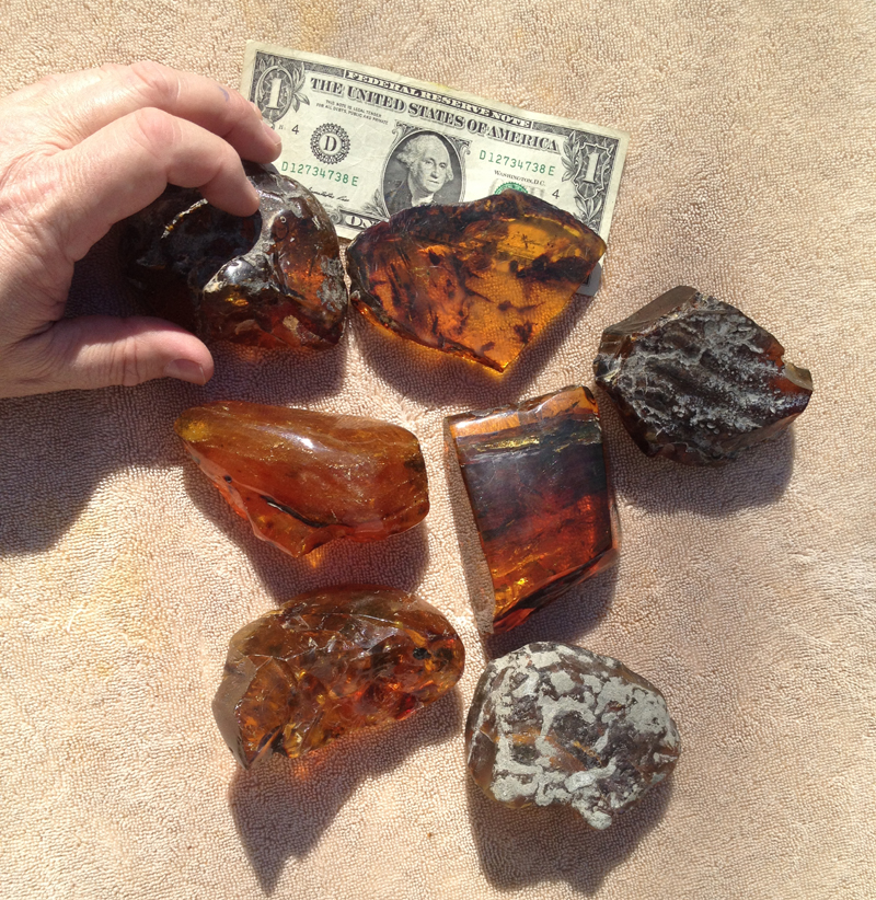 We have donated many hundreds of amber specimens to museums in the United States and have several dozen new species of insects in amber named after us. We have examined several thousand specimens of rough Burmese amber and have prepped many new Burmese fossil amber specimens. We have traveled to Europe with colleagues to examine unusual spectacular Dominican Amber specimens in private collections and we consider the amber curators of the museums in Santo Domingo, Puerto Plata and New York City our friends. Exploring for and collecting amber along with the examination and research of amber is our passion.