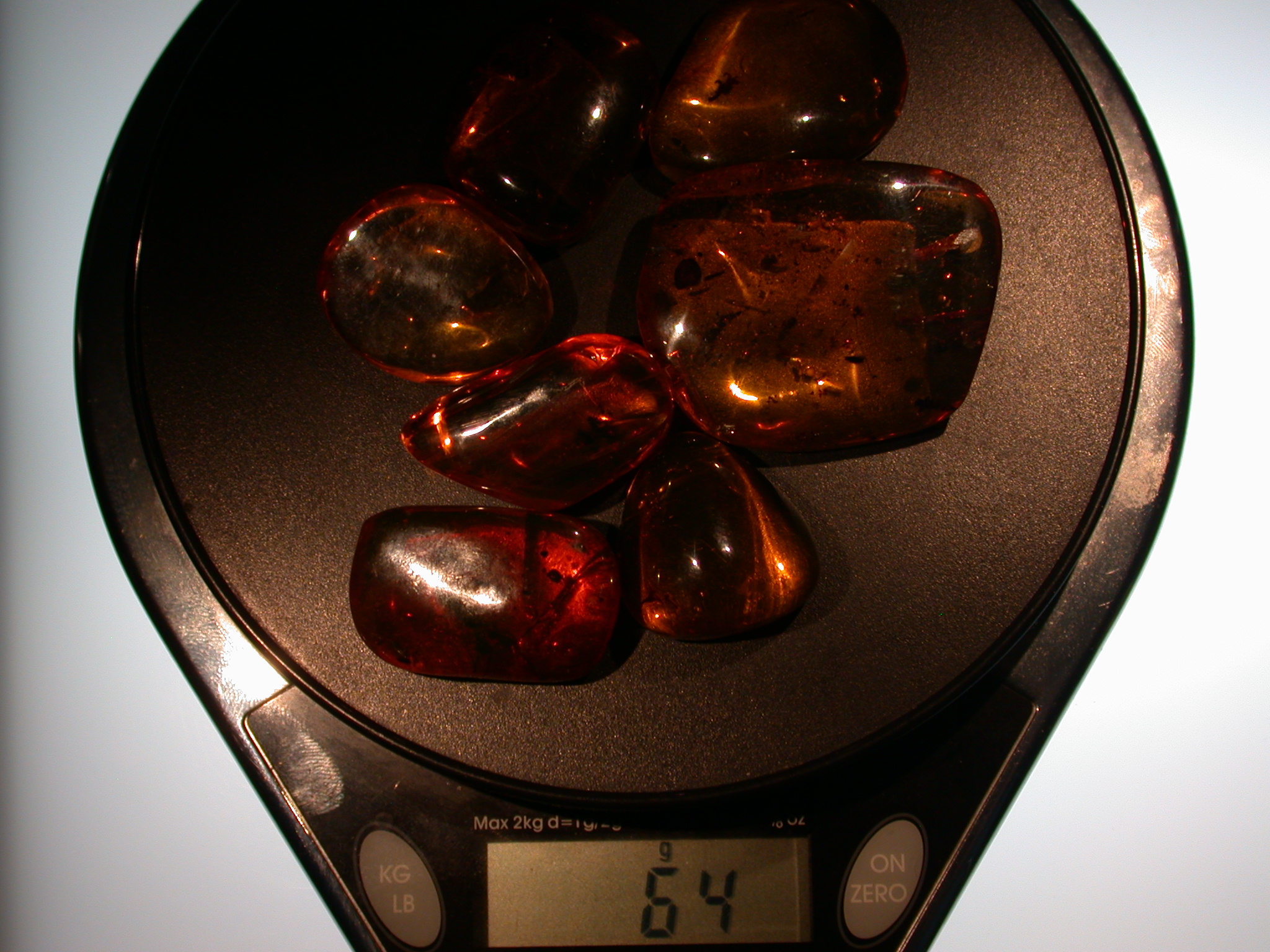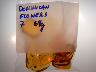 a group of 7 nice sized beautiful authenti Dominican Amber gemstones each with at least one rare blooming flower,