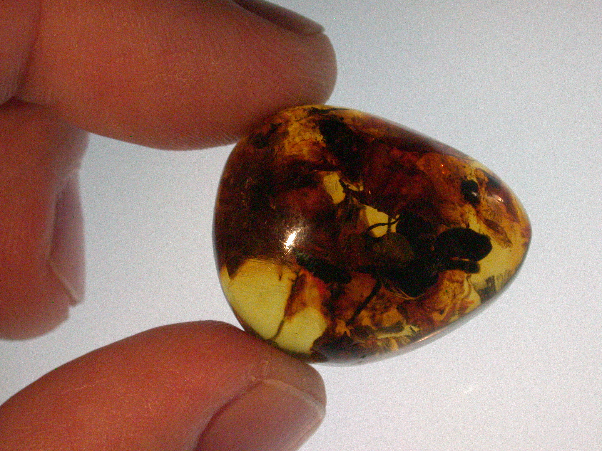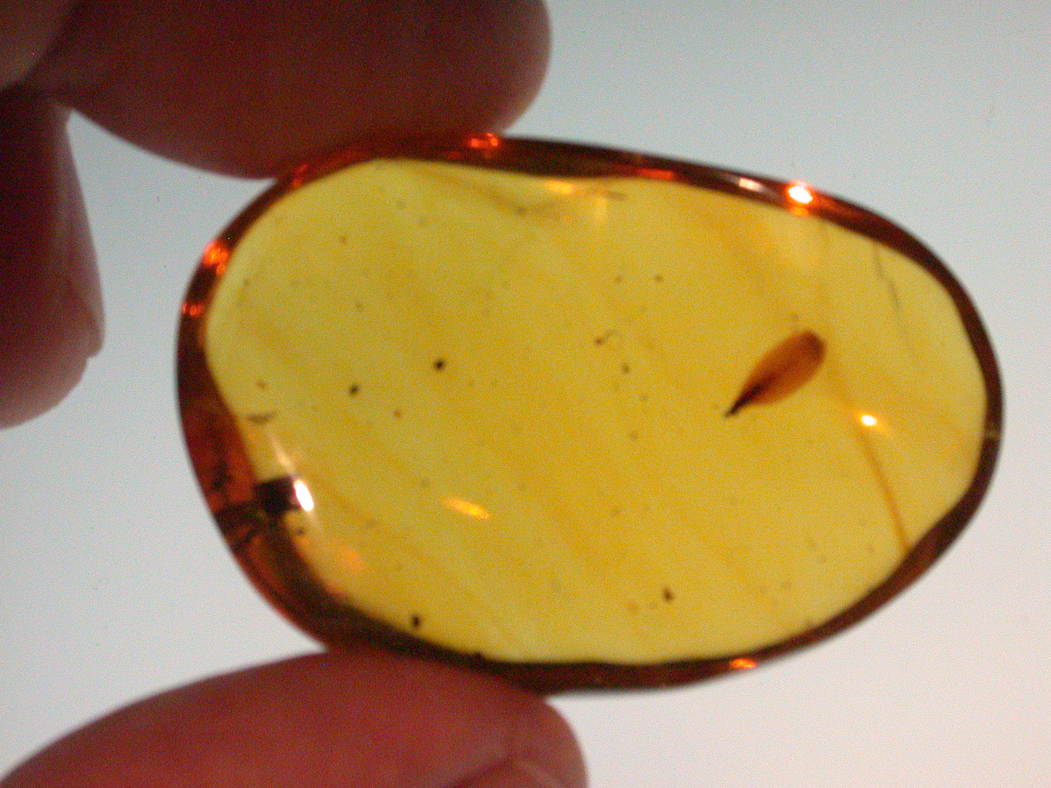 This is an authentic Dominican Amber Gemstone excavated in either the La Bucara, Los CaCoas, Peekado Boo Boo or the La Toca Amber Mine in the Spring/Summer of 2014.